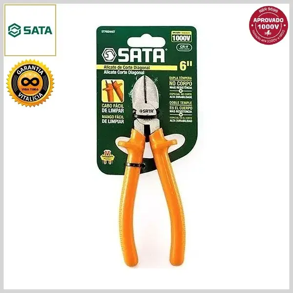Alicate de Corte Diagonal Cromo Vanádio Isolado c/Cabo Antideslizante - 6.0 pol (152mm) - Sata