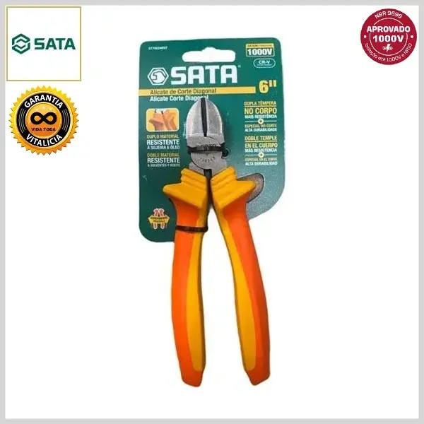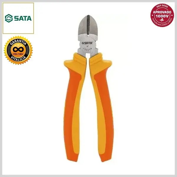 Alicate de Corte Diagonal Cromo Vanádio Isolado c/Cabo Emborrachado - 6.0 pol (152mm) - Sata
