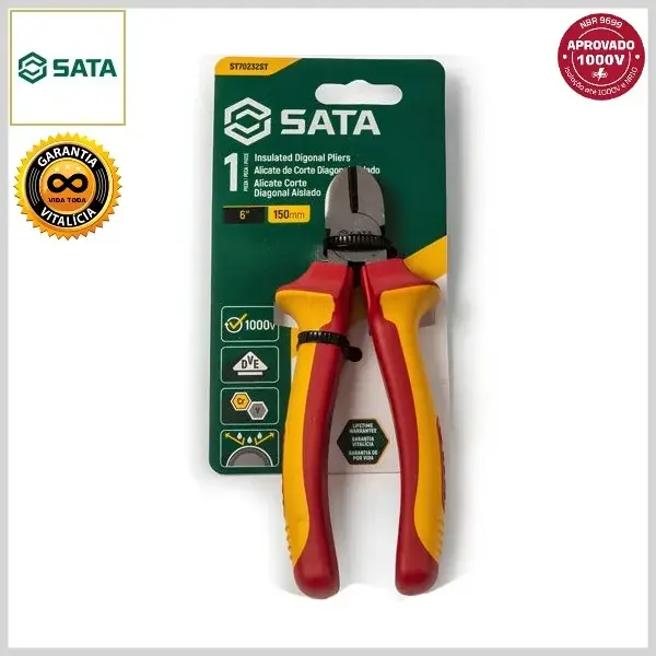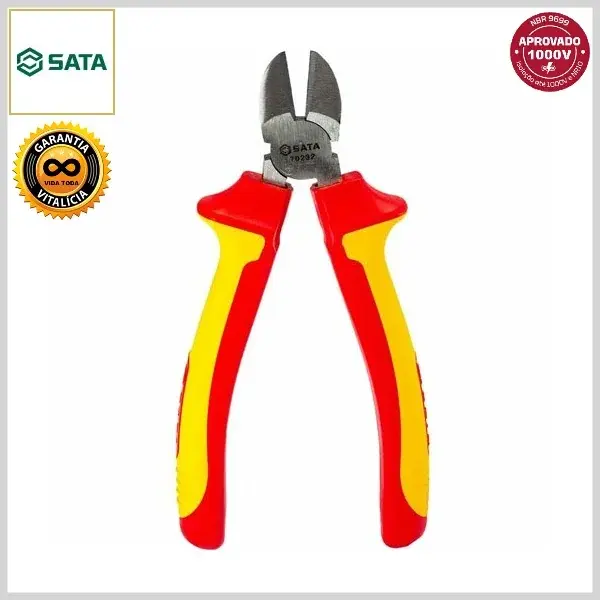 Alicate de Corte Diagonal Cromo Vanádio VDE-IEC Isolado c/Cabo Emborrachado - 6.0 pol (160mm) - Sata