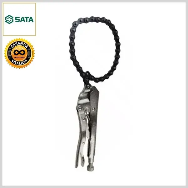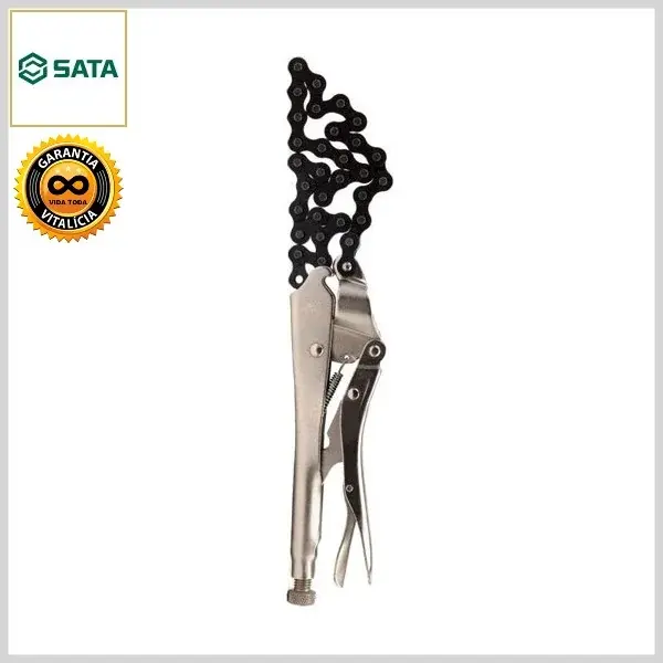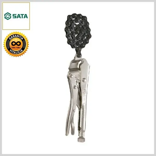 Produto indicado para segurar, travar e fixar com firmeza peças cilíndricas irregulares ou de grande diâmetro, como tubos, canos e conexões. Ferramenta com corrente ajustável, amplamente utilizada por profissionais de mecânica e reparação automotiva, encanadores e bombeiros hidráulicos.