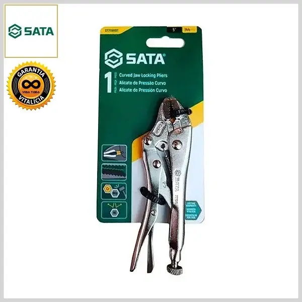Alicate de Pressão Mordente Curvo Cromo Molibdênio c/Cabo de Aperto Regulável - 5.0 pol (144mm) - Sata
