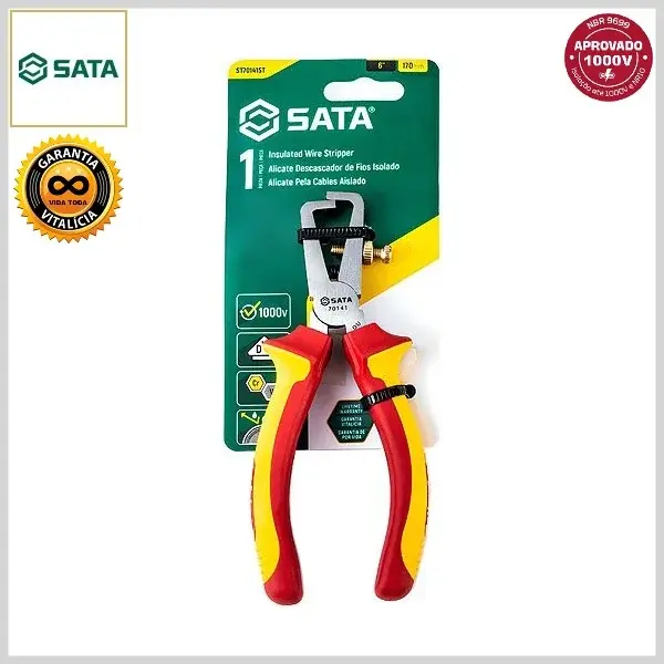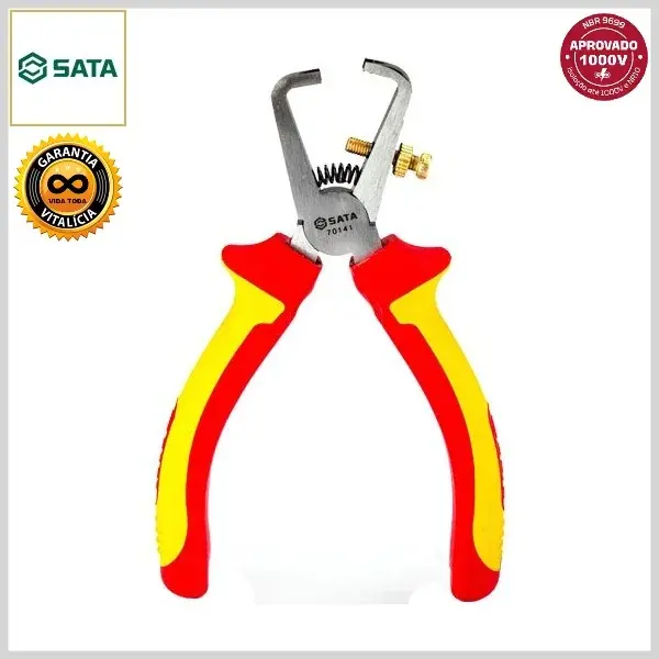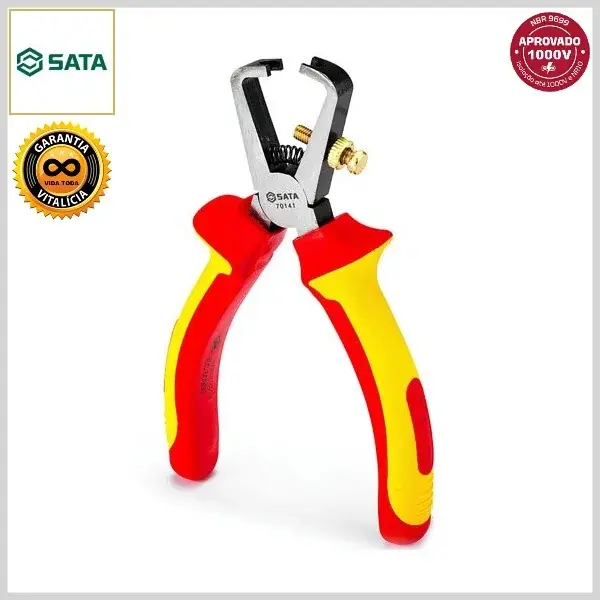 Alicate Descascador de Fios Cromo Vanádio VDE-IEC Isolado c/Cabo Emborrachado - 6.0 pol (165mm) - Sata