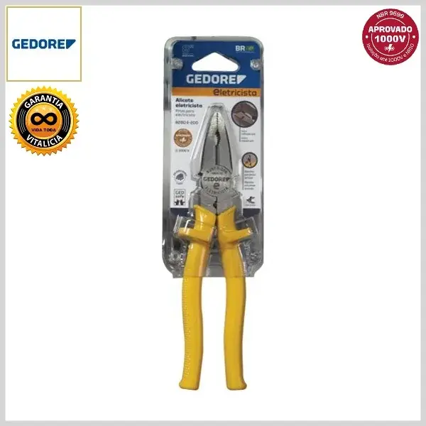 Alicate Eletricista Cromo Vanádio Isolado c/Cabo Antideslizante - 8.0 pol (218mm) - Gedore