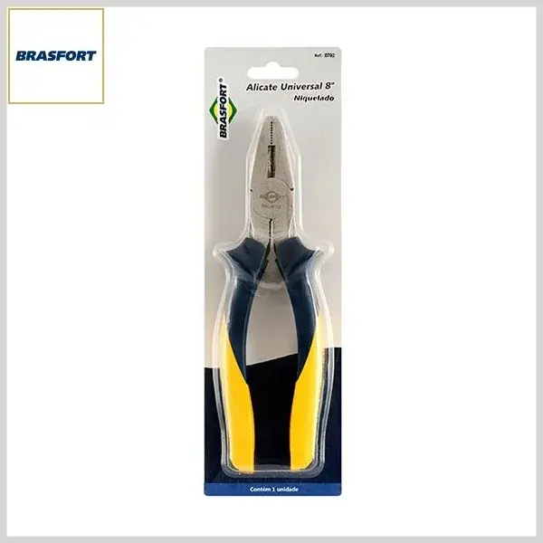 Alicate Universal Aço Carbono Niquelado c/Cabo TPR Emborrachado - 8.0 pol (203mm) - Brasfort