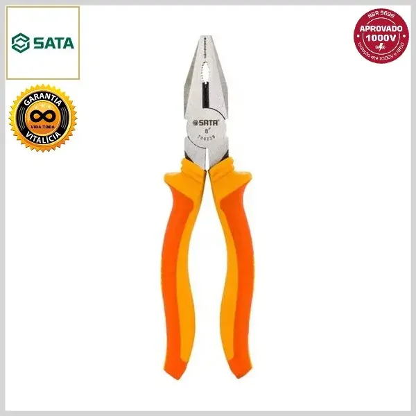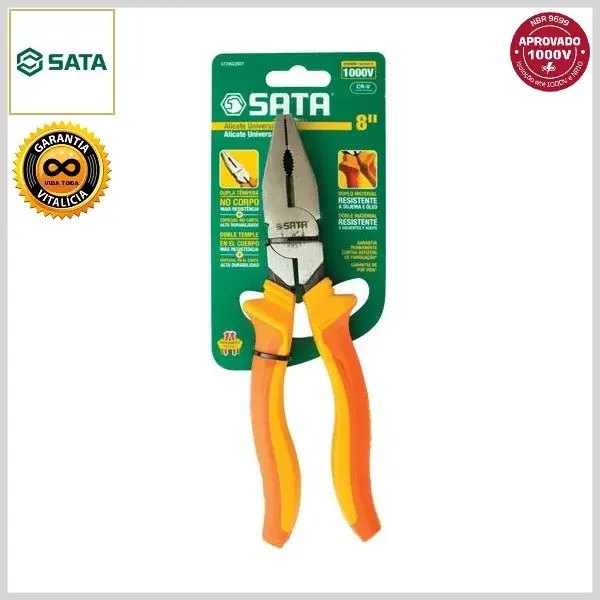 Alicate Universal Cromo Vanádio Isolado c/Cabo Emborrachado - 8.0 pol (208mm) - Sata