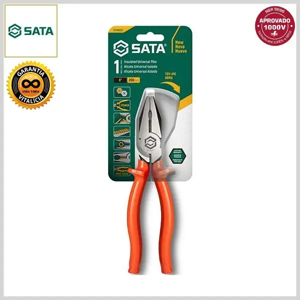 Alicate Universal Série_Bulk Cromo Vanádio Isolado c/Cabo Antideslizante - 8.0 pol (211mm) - Sata
