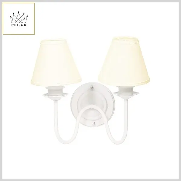 Arandela de Alumínio 024 Braço Curvo Duplo 2xE27 Cúpula Tecido Bege - Branco Brilhante - Reilux