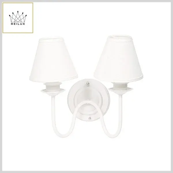 Arandela de Alumínio 024 Braço Curvo Duplo 2xE27 Cúpula Tecido Branco - Branco Brilhante - Reilux