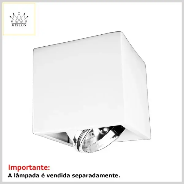 Arandela de Alumínio 2165 Retangular 1xHalógena c/Vidro Jateado - Branco Brilhante - Reilux
