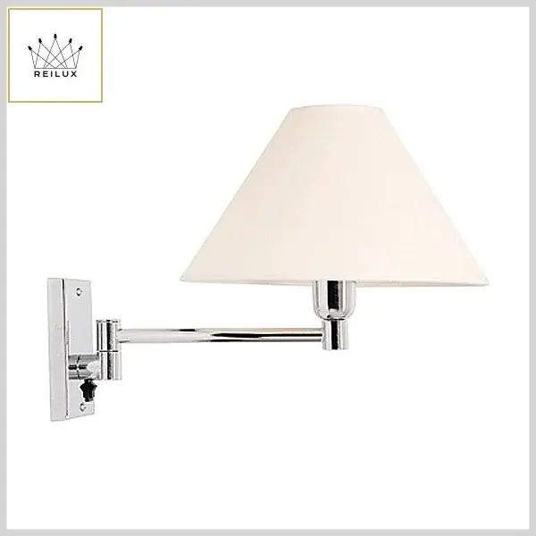 Arandela em Latão 077 1xE27 Braço c/1Articulação Cúpula Tecido Bege - Branco Brilhante - Reilux