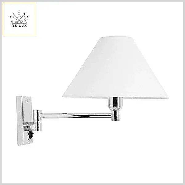 Arandela em Latão 077 1xE27 Braço c/1Articulação Cúpula Tecido Branco - Branco Brilhante - Reilux