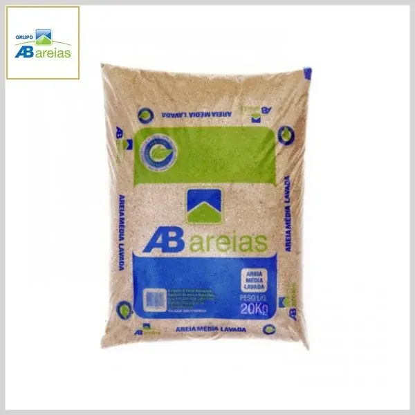 Areia Média Lavada: Ensacada, 20kg - Saco Plástico - AB Areias