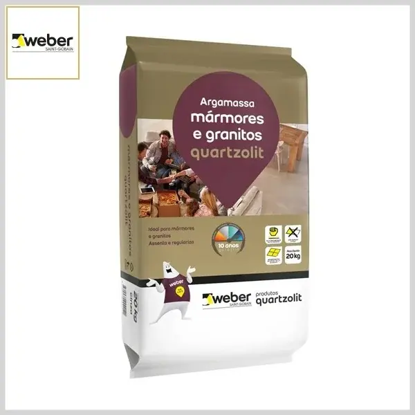 Mármores e granitos interno Quartzolit é uma argamassa colante branca, desenvolvida para assentamento de mármores e granitos de até 80x80cm em pisos ou paredes de áreas internas.