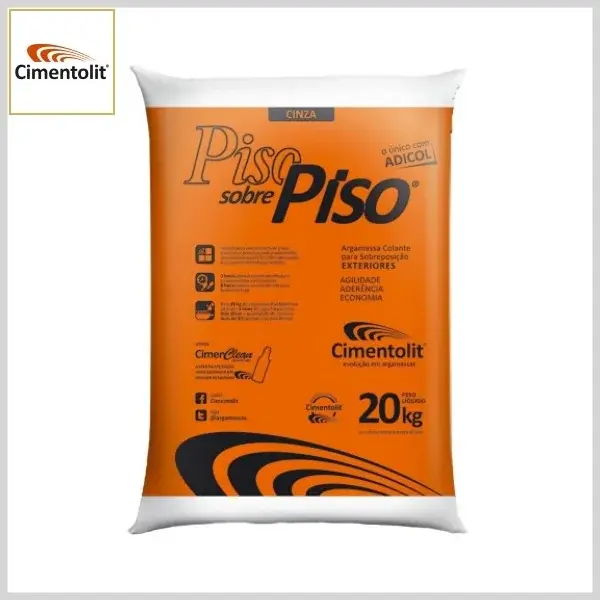 Argamassa Colante: Piso sobre Piso, Exteriores Cinza 20kg - Saco Plástico - Cimentolit