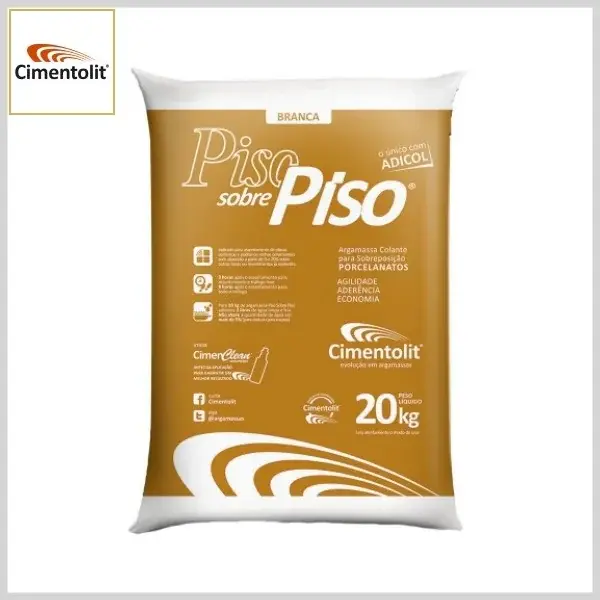 Argamassa Colante: Piso sobre Piso, Porcelanato Branca 20kg - Saco Plástico - Cimentolit