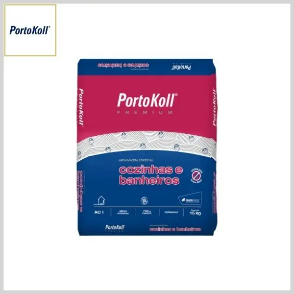 Argamassa Colante: Premium, AC-I Interna Cozinhas e Banheiros 15kg - Saco Plástico - PortoKoll