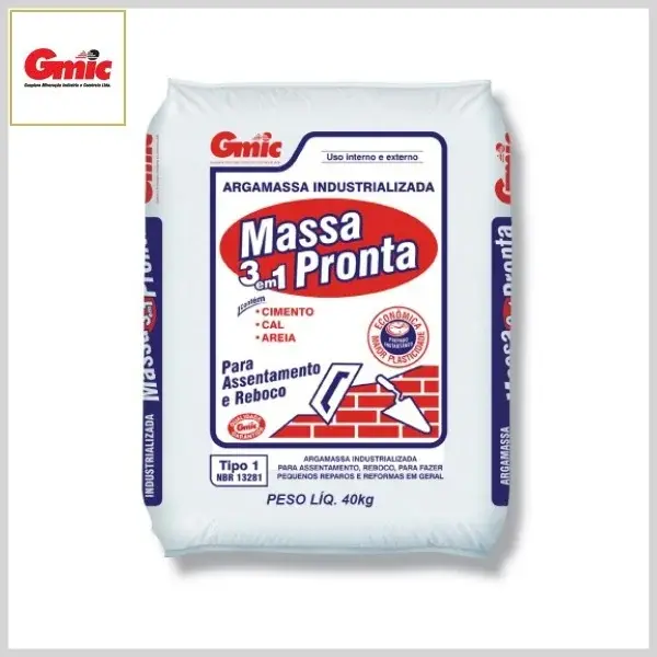> Argamassa Pronta: Aditivada 3em1, Assentamento e Reboco 40kg