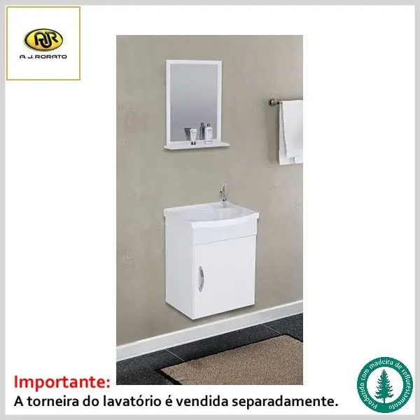 Armário de Banheiro Siena 39.0cm Mdf 5782 1Porta Suspenso c/Espelho+Pia - Branco - AJ Rorato