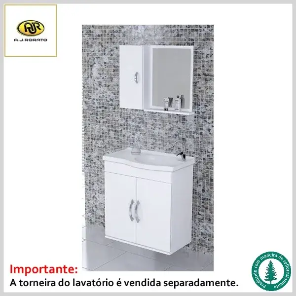 Armário de Banheiro Verona 55.5cm Mdf 5790 2Portas Suspenso c/Espelho+Pia - Branco - AJ Rorato