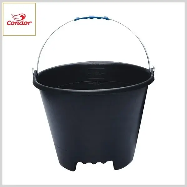 Produto com corpo em material plástico e capacidade para 12litros. Disponível apenas na côr preta, com alça metálica e empunhadura plástica, é ideal para a diluição de tintas, lavagem de ferramentas ou transporte de resíduos gerados na construção civil.