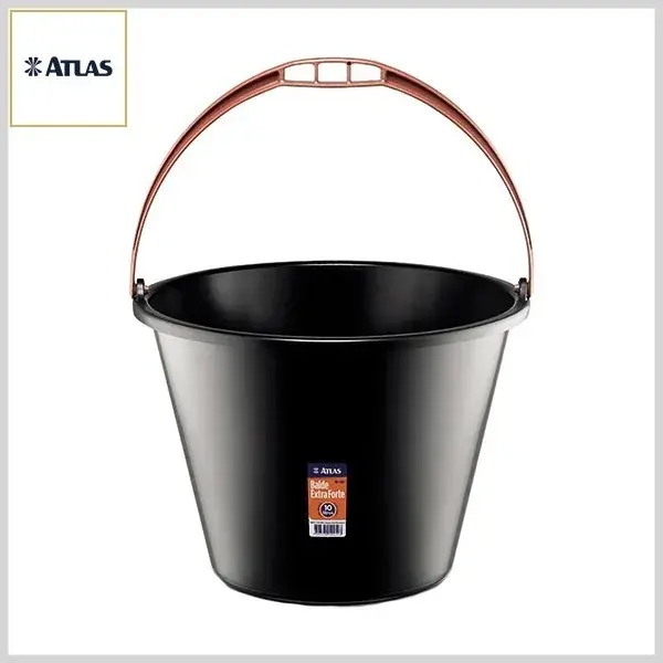 Produto com corpo em material plástico e capacidade para 10litros. Disponível apenas na côr preta, com alça plástica reforçada e com pega fácil no fundo, é ideal para a diluição de tintas, lavagem de ferramentas ou transporte de resíduos gerados na construção civil.