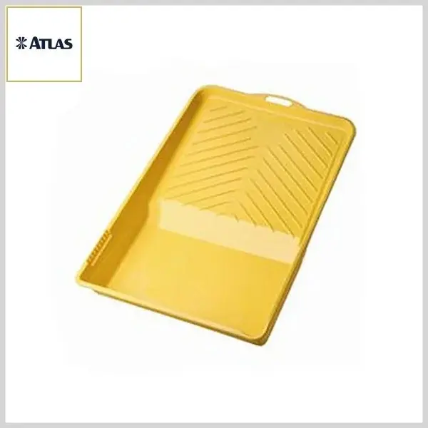 BANDEJA DE PINTURA ATLAS 1623 é produzida em plástico amarelo, com dimensões econômicas de 390x280x53mm (comprimento x largura x altura) e capacidade para 1,0 litro de tinta. É ideal para o uso com garfo e rolo de 23cm.