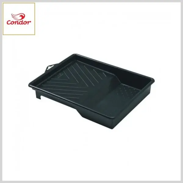 BANDEJA CONDOR 998 possui corpo plástico com capacidade para 1 litro de tinta. Na côr preta e com dimensões de 260x200x45mm (profundidade x largura x altura), é indicada para utilização com rolos de pintura com até 15 cm.