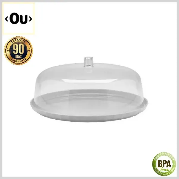 Bandeja para Bolos Break Redonda Plástico BpaFree Polipropileno c/Cúpula, 25cm s/Pé - Branco - Ou