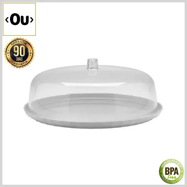 Bandeja para Bolos Break Redonda Plástico BpaFree Polipropileno c/Cúpula, 30cm s/Pé - Branco - Ou