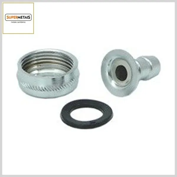 Produto com corpo metálico cromado, sendo indicado para acoplamento em torneiras com saídas de rosca 3/4pol. Acompanha anel para vedação do conjunto.