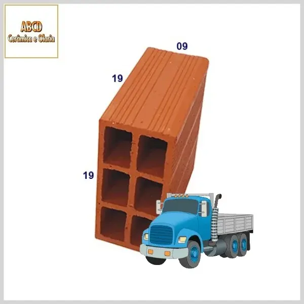 Bloco Cerâmico: Vedação 09x19x19cm 6 furos, Carga Fechada - Carga: 6.500 un - Abcd
