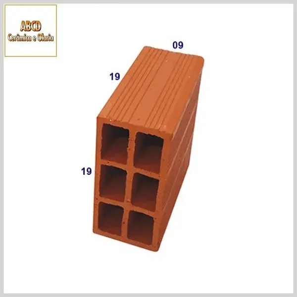 Bloco Cerâmico: Vedação 09x19x19cm, 6 furos - Venda Avulsa (x1un) - Abcd