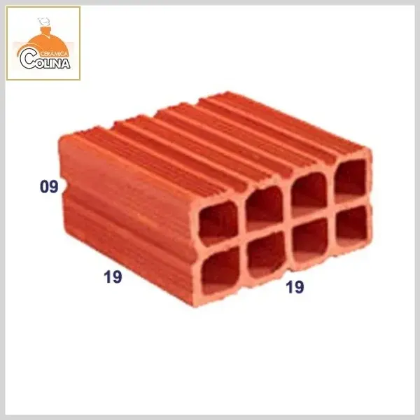 Bloco Cerâmico: Vedação 09x19x19cm, 8 furos - Venda Avulsa (x1un) - Colina