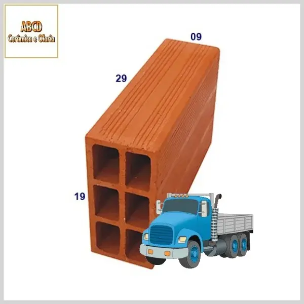Bloco Cerâmico: Vedação 09x19x29cm 6 furos, Carga Fechada - Carga: 4.100 un - Abcd