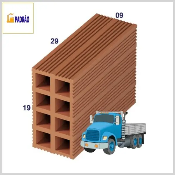 Bloco Cerâmico: Vedação 09x19x29cm 8 furos, Carga Fechada - Carga: 4.000 un - Padrão