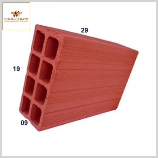 Bloco Cerâmico: Vedação 09x19x29cm, 8 furos - Venda Avulsa (x1un) - Kato