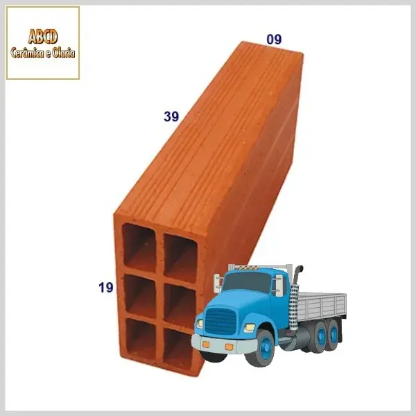 Bloco Cerâmico: Vedação 09x19x39cm 6 furos, Carga Fechada - Carga: 3.200 un - Abcd