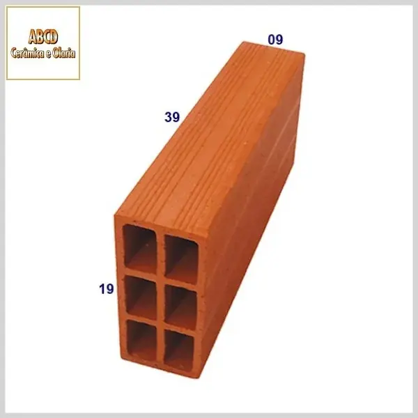 Bloco Cerâmico: Vedação 09x19x39cm, 6 furos - Venda Avulsa (x1un) - Abcd