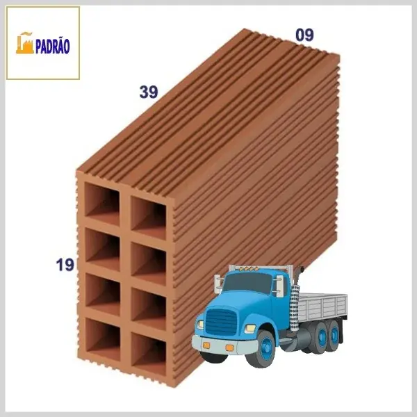 Bloco Cerâmico: Vedação 09x19x39cm 8 furos, Carga Fechada - Carga: 3.000 un - Padrão