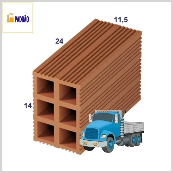 Bloco Cerâmico: Vedação 11.5x14x24cm 6 furos, Carga Fechada - Carga: 6.300 un - Padrão