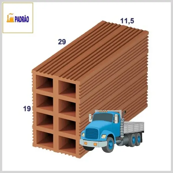 Bloco Cerâmico: Vedação 11.5x19x29cm 8 furos, Carga Fechada - Carga: 3.500 un - Padrão