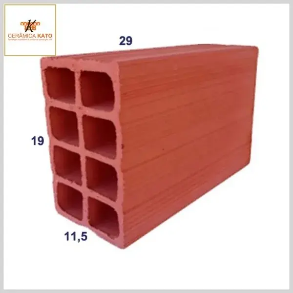 Bloco Cerâmico: Vedação 11.5x19x29cm, 8 furos - Venda Avulsa (x1un) - Kato