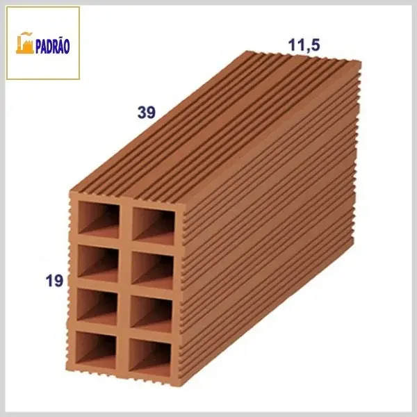 Bloco Cerâmico: Vedação 11.5x19x39cm, 8 furos - Venda Avulsa (x1un) - Padrão