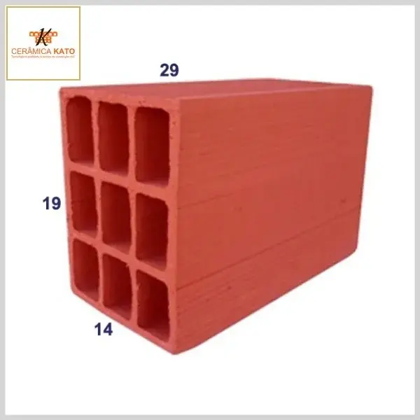 Bloco Cerâmico: Vedação 14x19x29cm, 9 furos - Venda Avulsa (x1un) - Kato