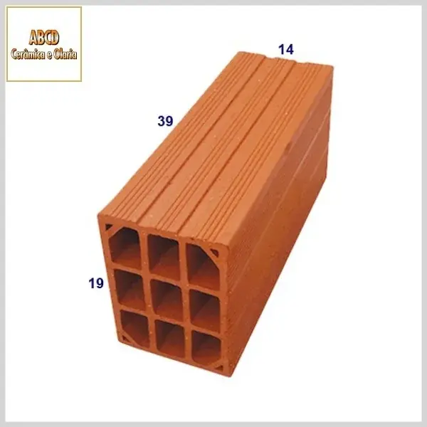 Bloco Cerâmico: Vedação 14x19x39cm, 9 furos - Venda Avulsa (x1un) - Abcd