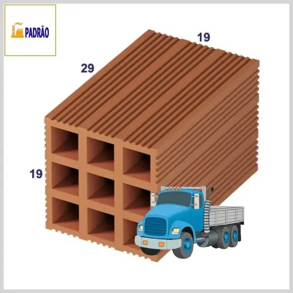 Bloco Cerâmico: Vedação 19x19x29cm 9 furos, Carga Fechada - Carga: 2.000 un - Padrão