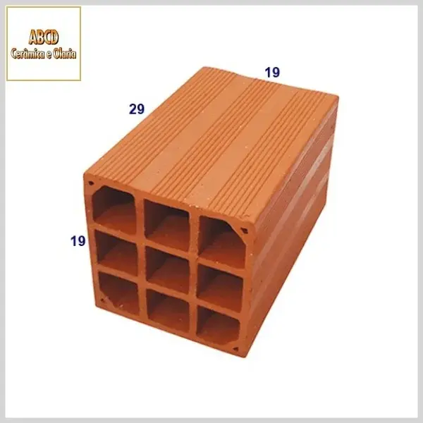 Bloco Cerâmico: Vedação 19x19x29cm, 9 furos - Venda Avulsa (x1un) - Abcd