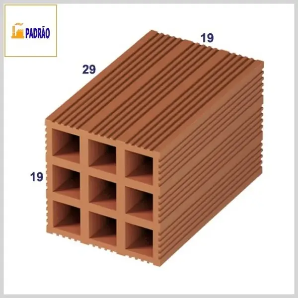 Bloco Cerâmico: Vedação 19x19x29cm, 9 furos - Venda Avulsa (x1un) - Padrão