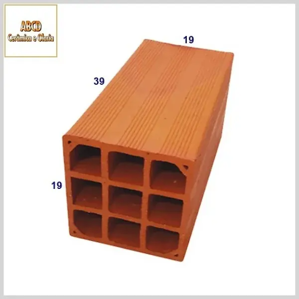 Bloco Cerâmico: Vedação 19x19x39cm, 9 furos - Venda Avulsa (x1un) - Abcd