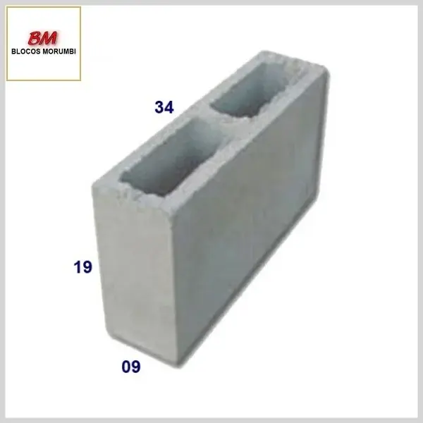 Bloco de Concreto: Vedação Aparente, 09x19x34cm - 2.0MPa, Venda por Unidade - Morumbi